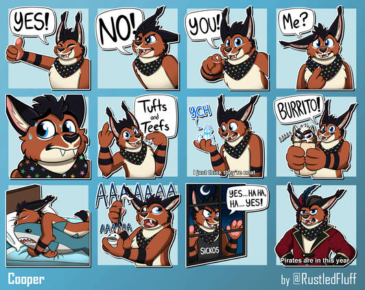 If you want to request an art commission that do not fall into the category of stickers, emotes, ref sheets or badges, please use the link below. This form will constantly be open, but there is no guarantee it will be accepted.
