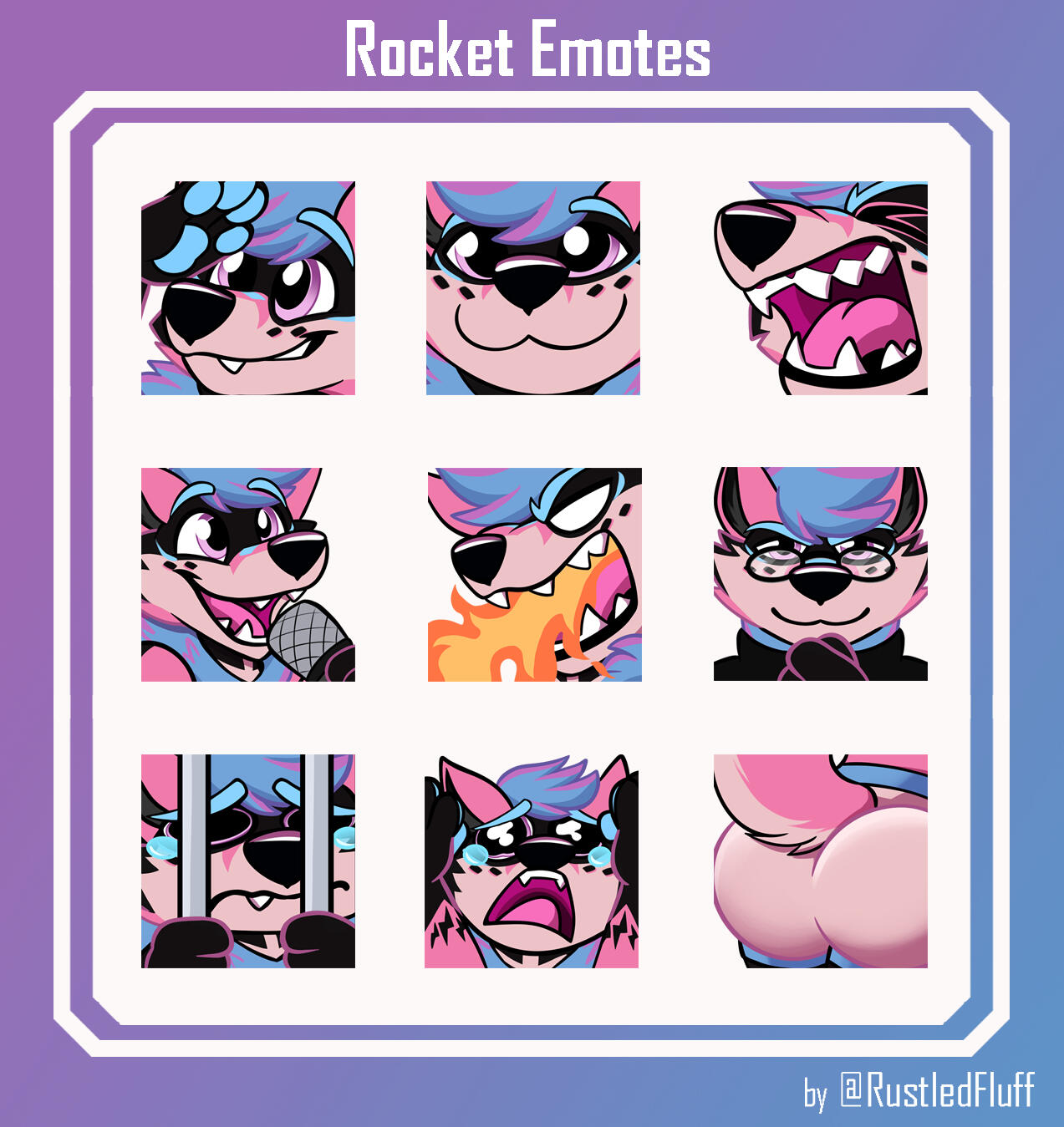 Emotes meant to be used in the Twitch streaming service.You may request any number of emotes between a minimum of 2 emotes and a maximum of 8 emotes in a single commission.Animated emotes unavailable.